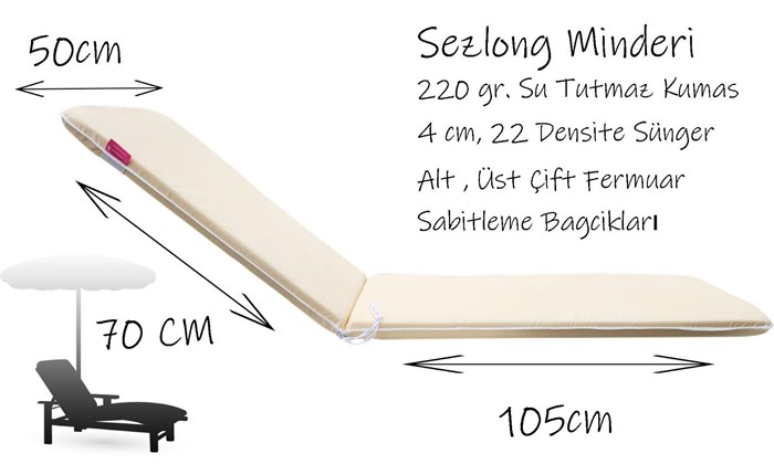 22 Densite 4 Cm Kalınlıkta Çift Fermuarlı Su İtici Özellikli Kumaştan Şezlong Minderi